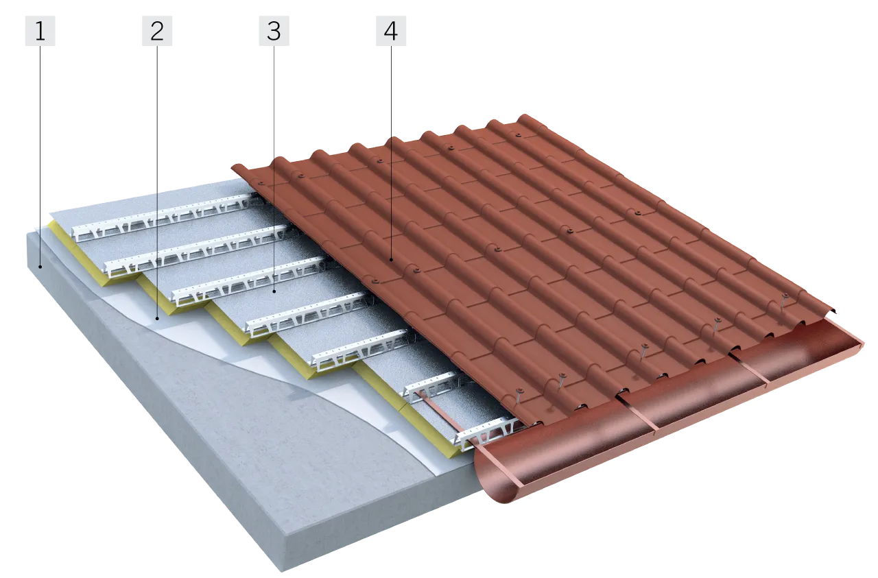 Solaio in cemento Guaina traspirante Pannello coibentato con ventilazione Coppo Roma